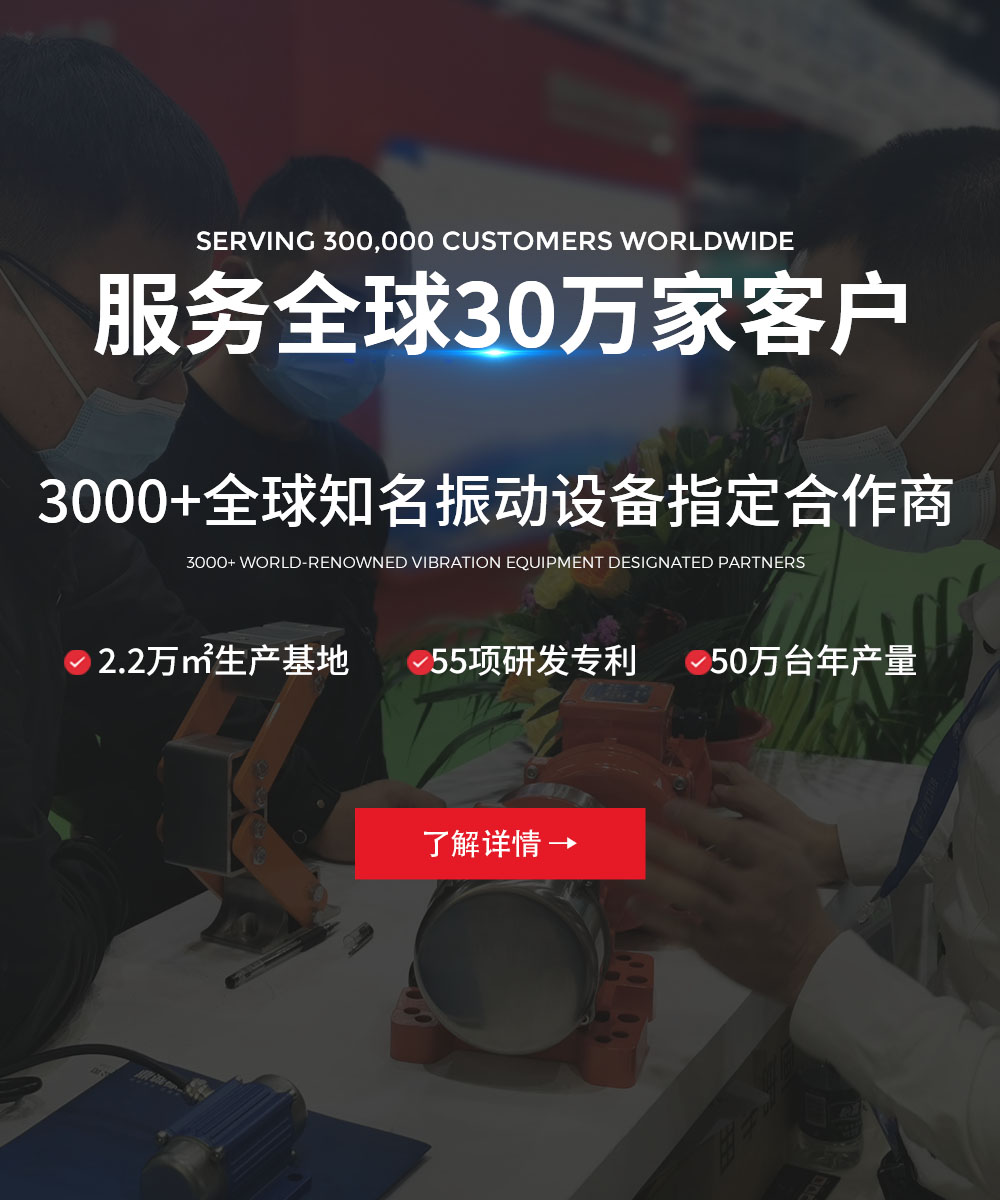 01 30年行業(yè)沉淀 · 實力廠家 振動電機(jī)設(shè)備贏領(lǐng)者
